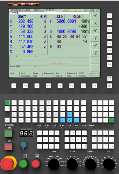 Устройство ЧПУ представляет собой распределенное устройство ЧПУ, позволяющее приблизить аналоговые и цифровые входы/выходы к органам управления станочного оборудования. В устройстве применена высокоскоростная шина для связи между интеллектуальным пультом и неинтеллектуальным блоком для управления аналоговыми и цифровыми входами/выходами. Заложенный принцип открытой архитектуры позволяет применять устройство ЧПУ к сложным объектам управления. Устройство имеет возможность создания виртуального станочного пульта посредством функционально-программируемых кнопок.